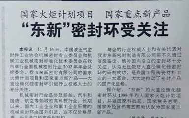 1994年,東新密封有限公司與中國船舶工業集團公司第七研究院704研究所合作,投資50多萬元,生產出當時國內******直徑(Ф530mm)碳化硅密封圈,成功填補了國內空白。
